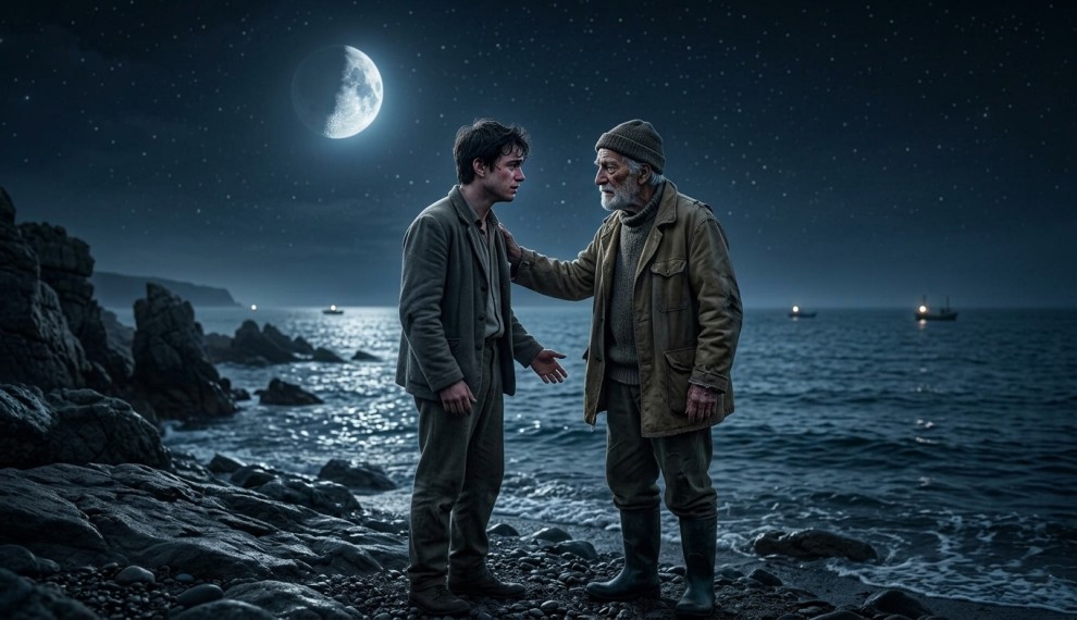 Un día, mientras caminaba de noche por la orilla del mar, se encontró con un extraño anciano que parecía haber vivido mil vidas. Tenía el aspecto de un humilde pescador; lo había visto venir caminando lentamente desde unos peñascos que había a lo lejos de la costa. El anciano tenía una mirada profunda y sabia, y Guillermo se sintió atraído por él; le producía cierta paz e incluso la forma de caminar le recordaba mucho a su padre. El anciano notó la tristeza en los ojos de Guillermo y se acercó a él.