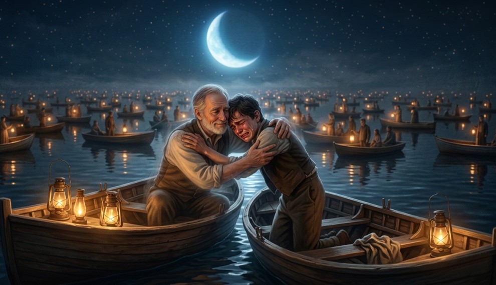 Guillermo buscó a su padre con la mirada y, finalmente, lo vio en una de las barcas. Corrió hacia él con los ojos a punto de llorar y se abrazaron con fuerza.