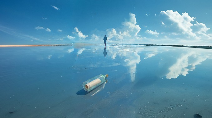 “Era un día perfecto para reflexionar sobre su vida” se decía a sí mismo, mientras caminaba observando el horizonte como buscando una respuesta a sus preocupaciones, cuando de pronto tropezó con una extraña botella que no parecía nada convencional, de un tono esmeralda verdoso y un extraño tapón de corcho, la botella reflejaba la luz del sol de una manera peculiar, inmediatamente le llamó la atención, ya que dentro de ella había un extraño objeto. Por instinto recogió la botella y la limpió con la mano, revelando un papel amarillento enrollado dentro de ella.